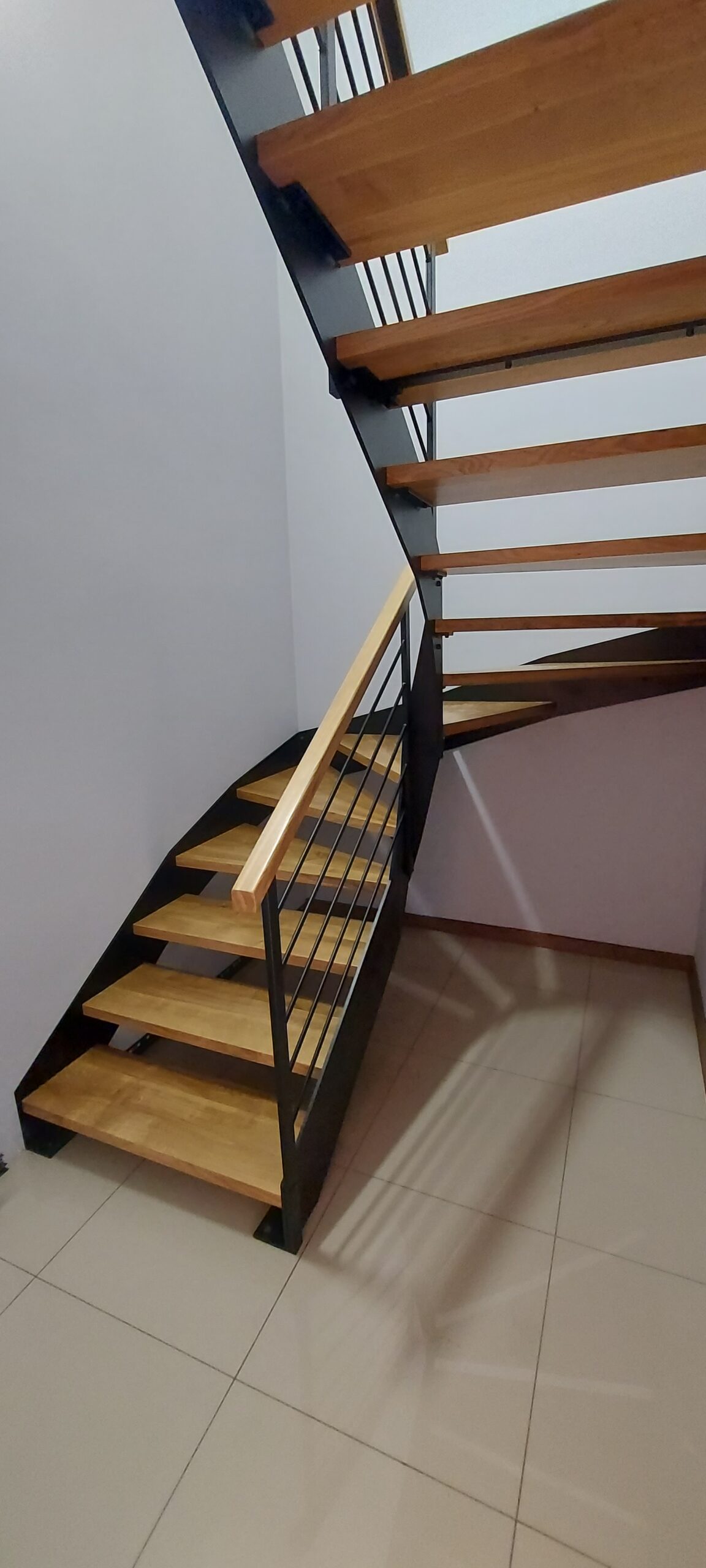 • schody gięte pozwalające optymalnie wykorzystać całą przestrzeń, która jest do dyspozycji;